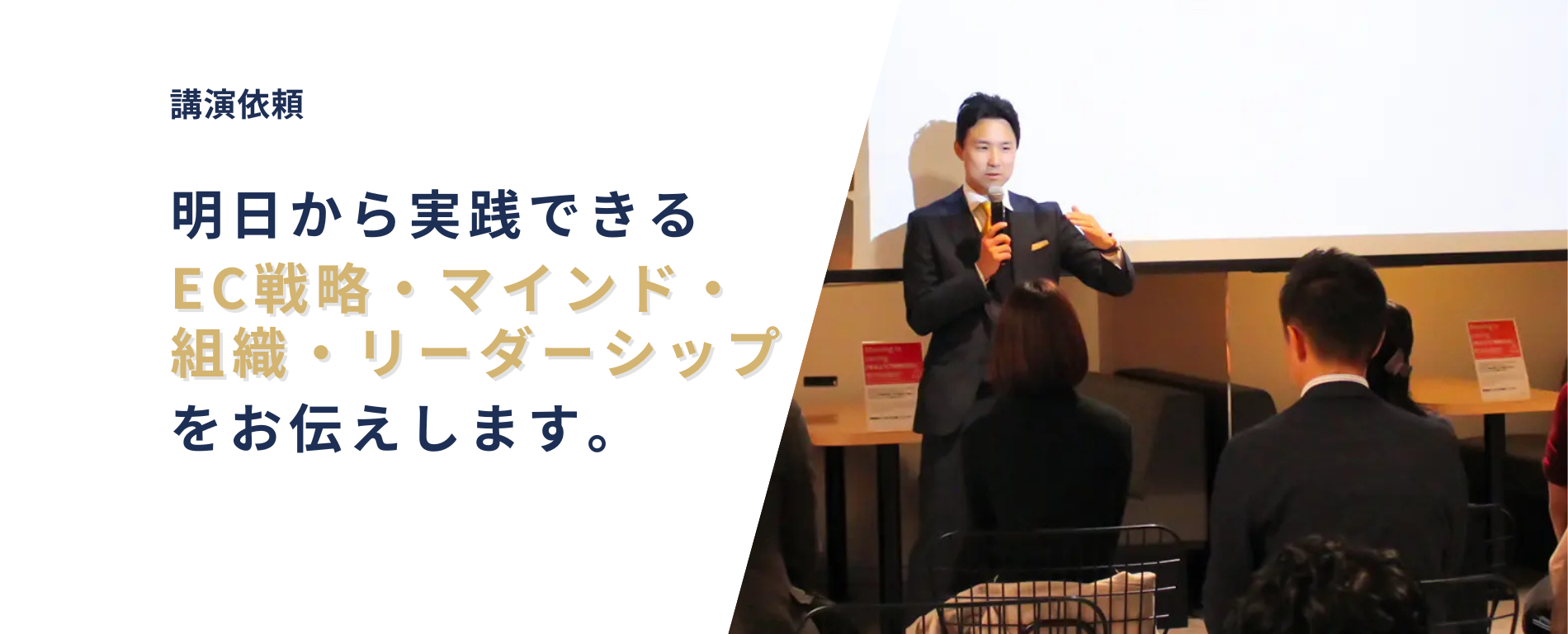企業が変われば、日本はもっと元気になる。私はその信念のもと、現場で数多くの挑戦に向き合い、成果を創り出してきました。伊藤祐太は、出光・Amazon Japan・MBA・2社の経営という多様なキャリアを通じて、「挑戦できる組織づくり」と「未来を生み出す力」の育成を実践してきました。講演では、理論だけでなく、現場での葛藤・失敗・再挑戦のリアルを交えながら、“明日から実践できるマインド・組織・EC・リーダーシップ”をお伝えします。 代表挨拶 こんな方におすすめです 主な講演内容 これまで上場企業から地域企業、自治体、教育機関まで幅広く登壇し、累計 30回以上の講演・研修を実施してきました。 イノベーションを生み出す組織づくり 東証プライム企業•700名 新規事業開発の手法とマインドセット 東証プライム企業•50名 真実の15秒~SS現場から学んだ成功の秘訣~ 特約販売店様の会•40名 中堅・中小企業のためのEC活用策 金融機関•50名 ECの最新トレンド 地方自治体•30名 最新デジタルマーケティング 外資系企業•30名 MBAでの学びと起業について 大学•100名 他多数 講演のご相談 テーマや内容は目的に応じてカスタマイズ可能です。お気軽にご相談ください。 相談する 講演テーマ例 経営・組織 リーダーシップ/組織作り 現場と経営をつなぐ人材育成、挑戦し続ける組織、失敗を成長に変える実践知を共有します。現場×経営をつなぐ育て方挑戦が続く組織の作り方失敗を成長に変えるリーダーシップ EC・マーケティング EC成長/全体最適 “年商の壁”の越え方、再現性のある意思決定、組織・財務・マーケを一体で捉える視点を提供します。 EC年商1億の壁を越える ECで10億円をつくる企業に共通する思考・行動 EC・組織・財務を一体で捉える「全体最適の実行」とは キャリア 挑戦/マインドセット 逆境から挑戦へ変える思考法、行動を生むセルフリーダーシップなど、個人の変化にフォーカスします。「真実の15秒」現場で学んだ“人を動かす力”逆境→挑戦へ変える思考法セルフリーダーシップ 講演のご相談 テーマや内容は目的に応じてカスタマイズ可能です。お気軽にご相談ください。 相談する